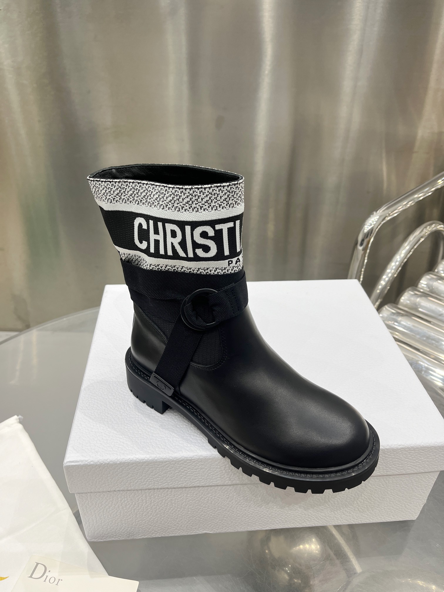 Dior Black Calfskin Ankle Boots with Gold-Tone Details, Size 35-41