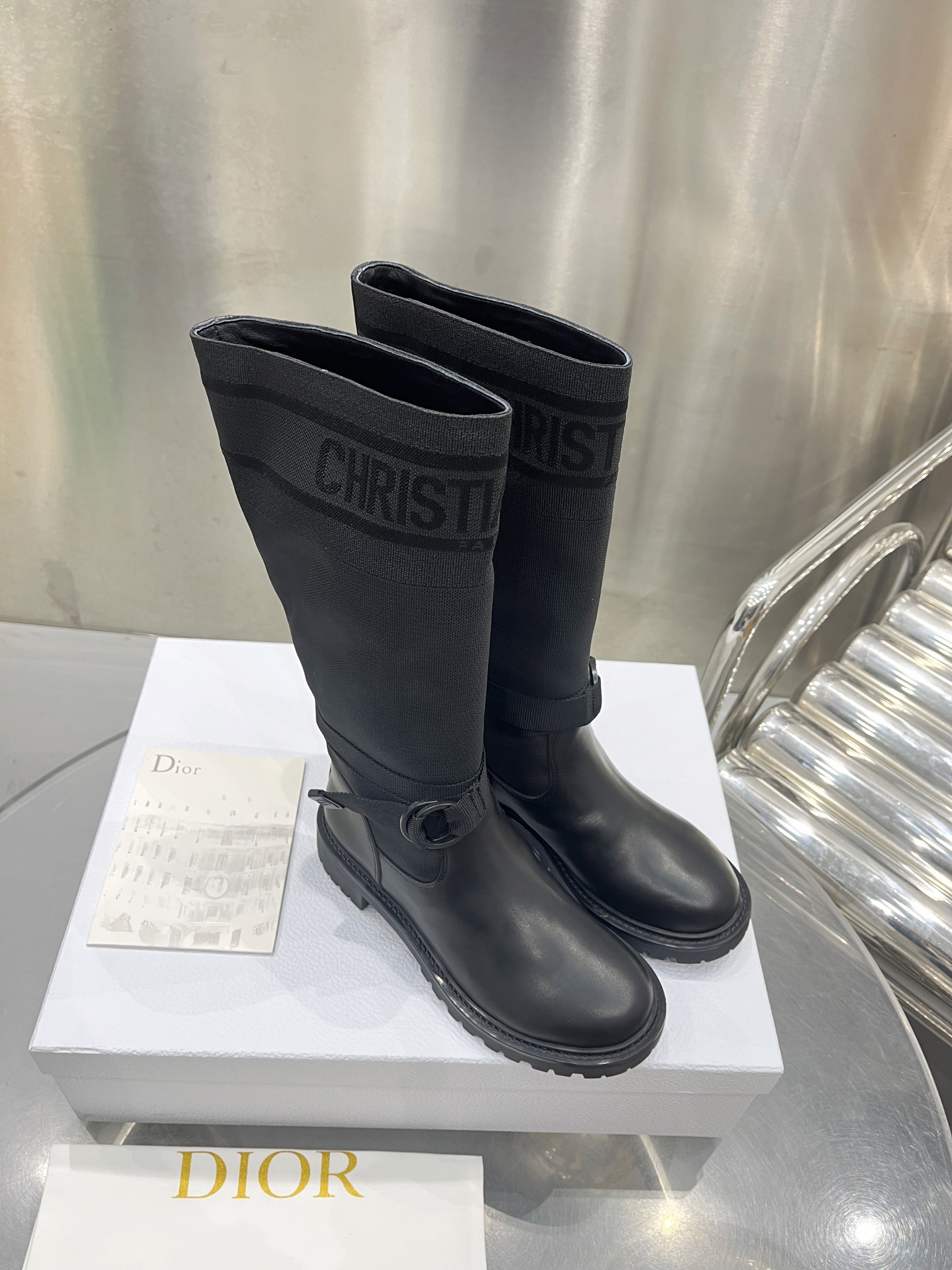 Dior Women’s Black Leather Long Boots Comfortable and Stylish, Size 35-41