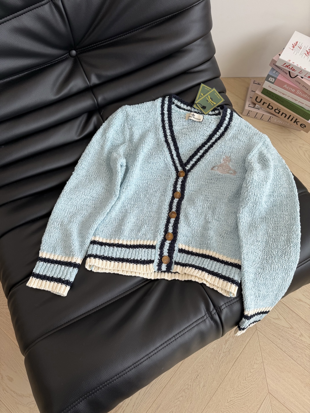 This cardigan is perfect for adding a touch of elegance to your autumn and winter wardrobe. With its unique glacier blue color and delicate Saturn embroidery, it’s sure to turn heads.