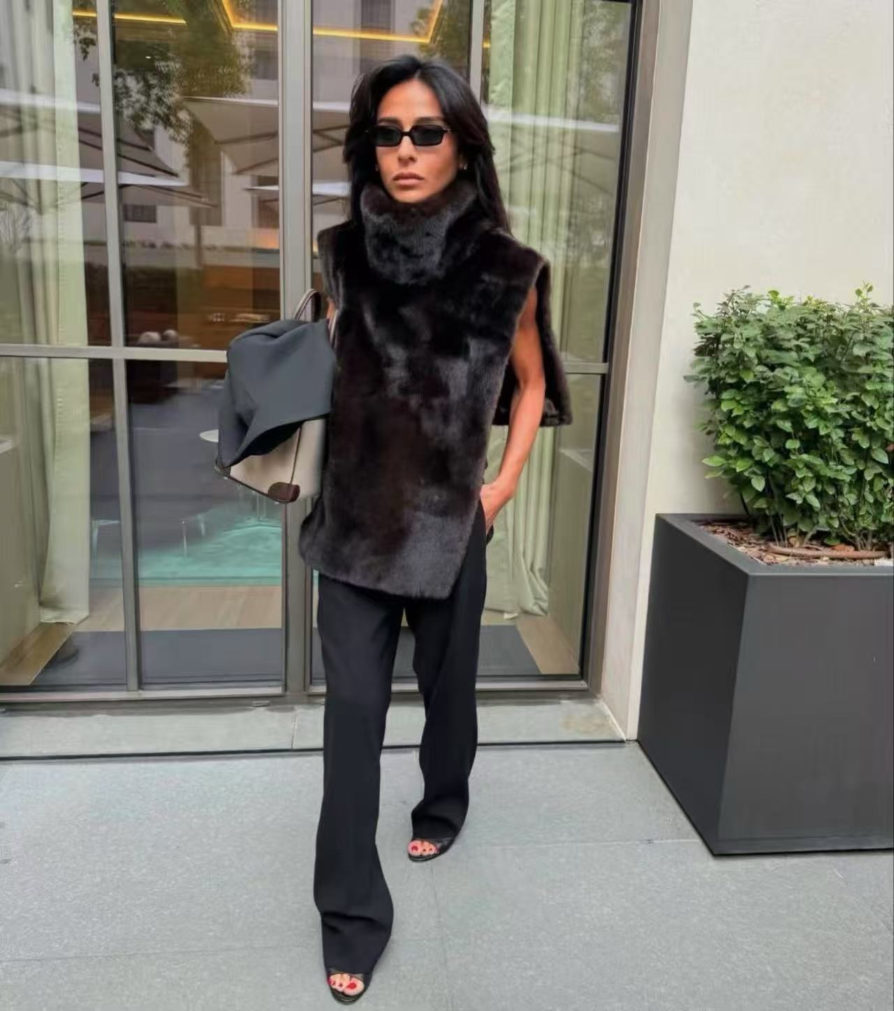This exquisite poncho capelet is a must-have for the fashion-forward individual. Crafted from 100% Copenhagen purple label velvet mink fur, this piece exudes luxury and sophistication.