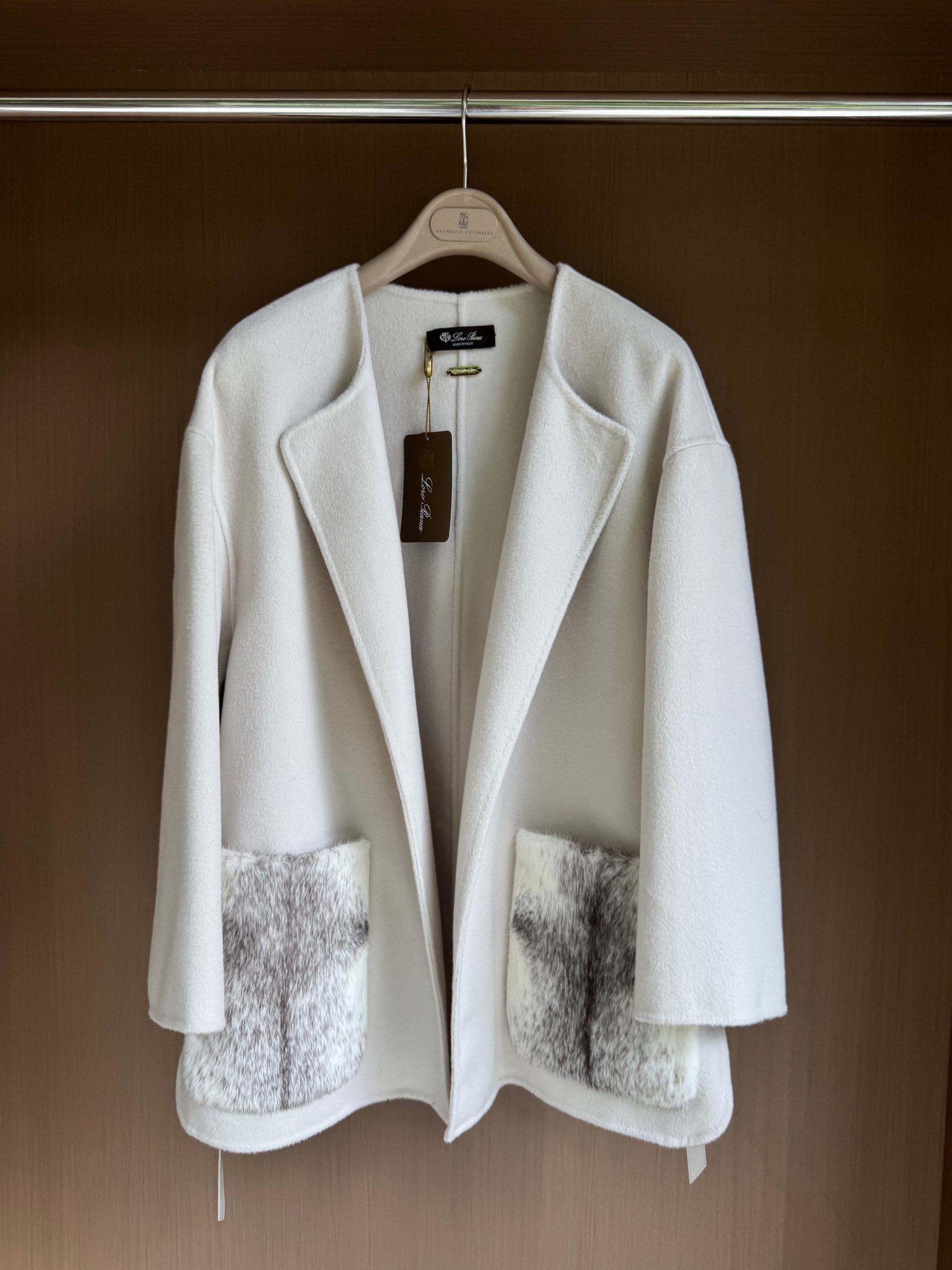 Elegant Cashmere Coat with Mink Fur Pockets – Timeless Style & Supreme Comfort