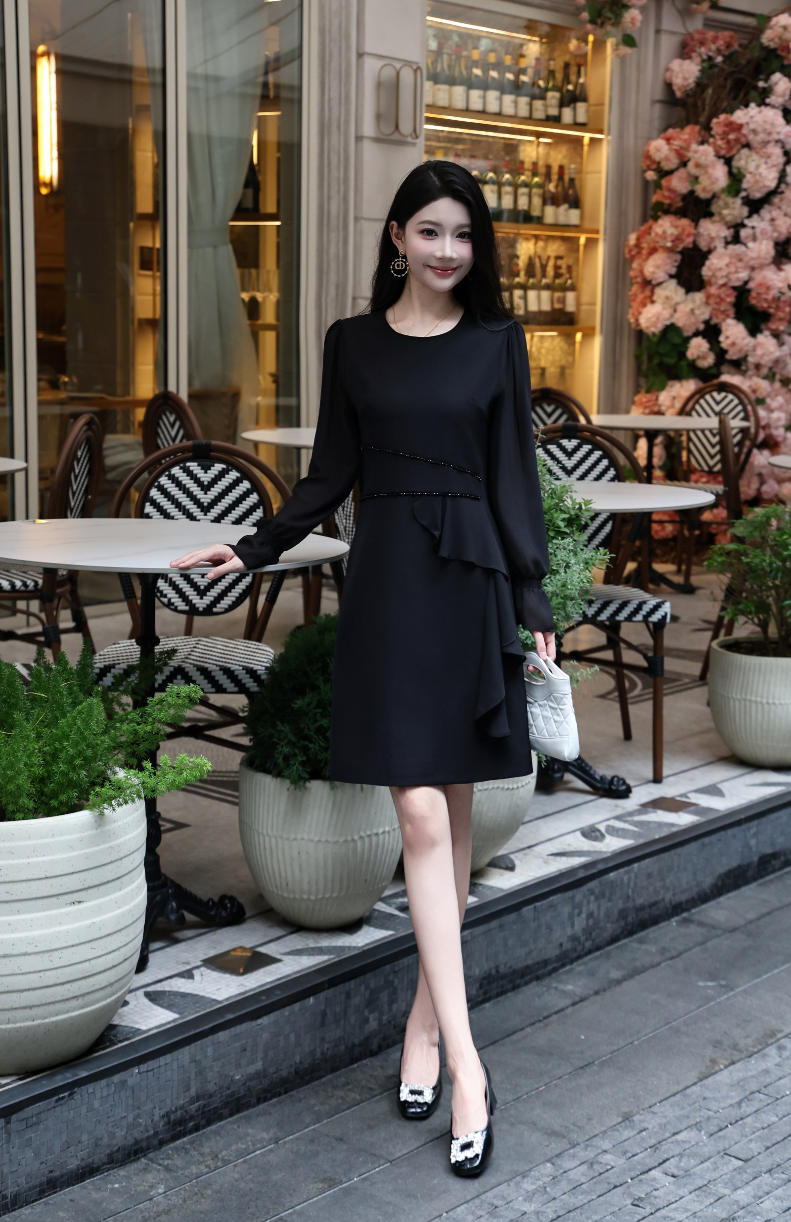 Elegant Chanel-Style Beaded Dress with Ruffle Hem – Chic & Slimming