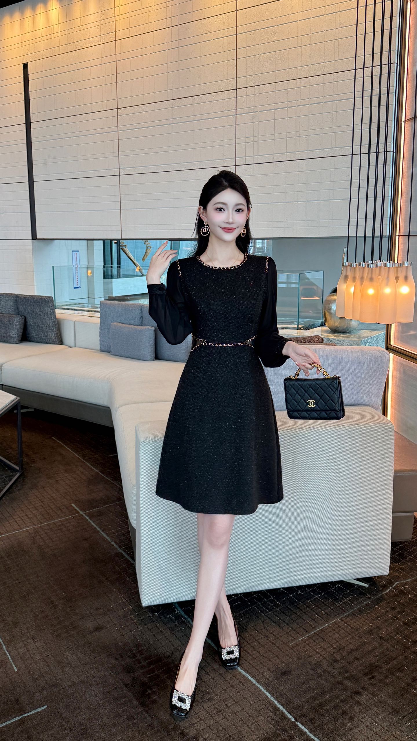 This Chanel-inspired dress is a must-have for your autumn wardrobe. Designed with exquisite craftsmanship and attention to detail, this dress exudes luxury and elegance. Perfect for parties, special occasions, or a night out, it’s sure to turn heads.