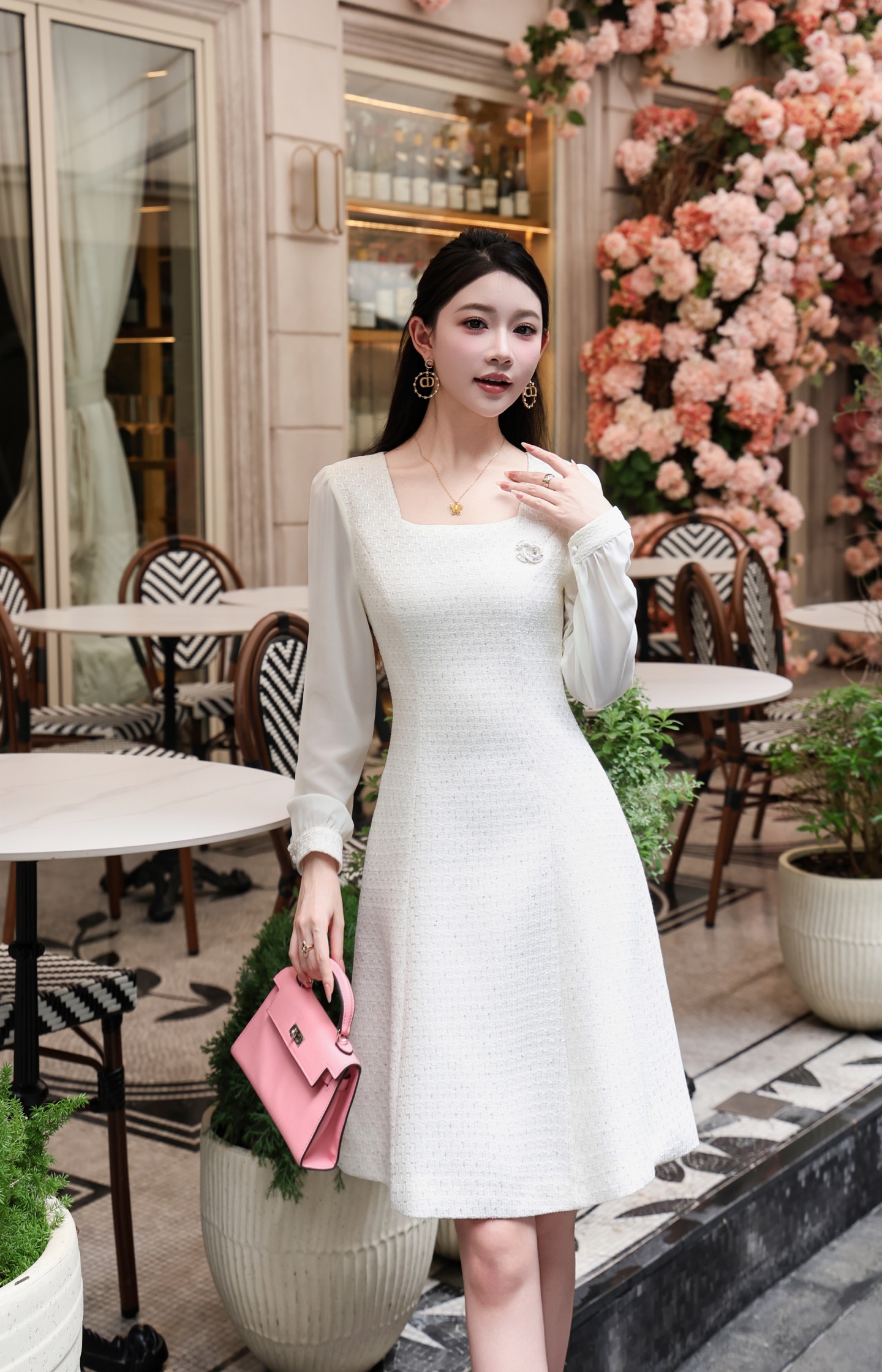 This exquisite dress from the 2025 Fall/Winter collection embodies the essence of French elegance and sophistication. Designed with a flattering A-line silhouette, it offers a timeless appeal suitable for various occasions.