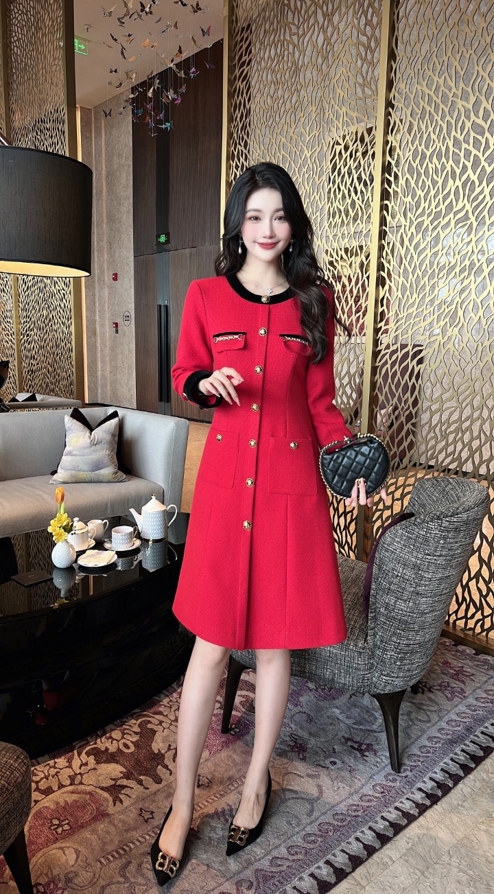 I absolutely adore this dress! The tweed is so luxurious, and the velvet collar adds a touch of elegance. I wore it to a dinner party, and I received so many compliments. It’s a must-have for any fashion-conscious woman!
