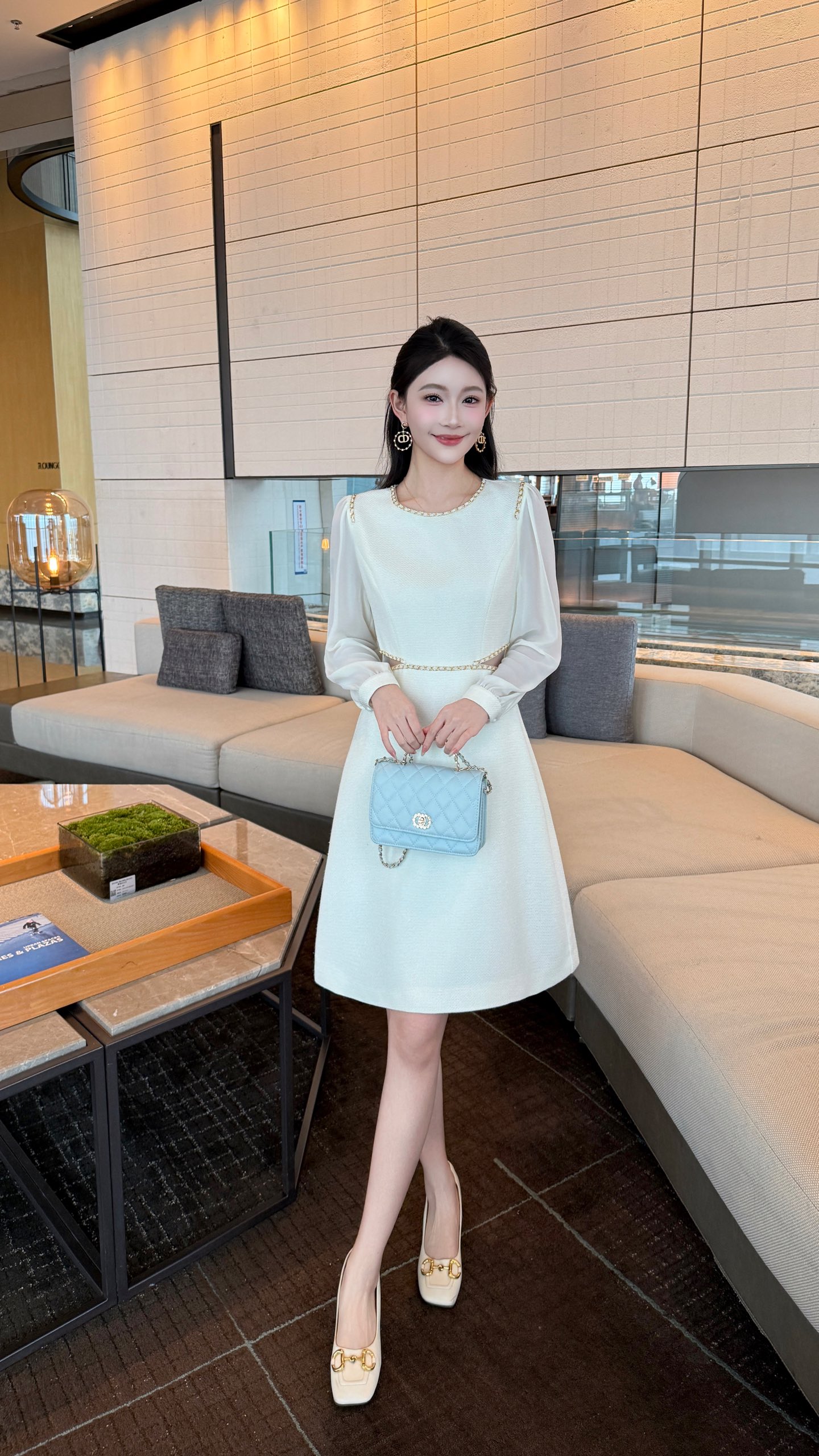This stunning dress is the perfect blend of classic elegance and modern style. Inspired by iconic Chanel designs, it features exquisite chain detailing that adds a touch of luxury and sophistication.
