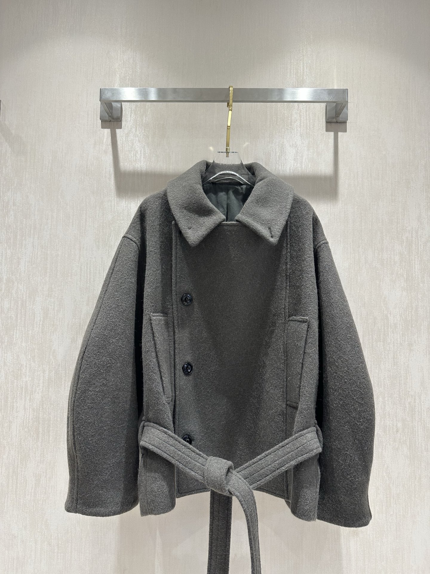 Lemaire Gray-Green Wool Blend Belted Short Coat – Stylish & Comfortable