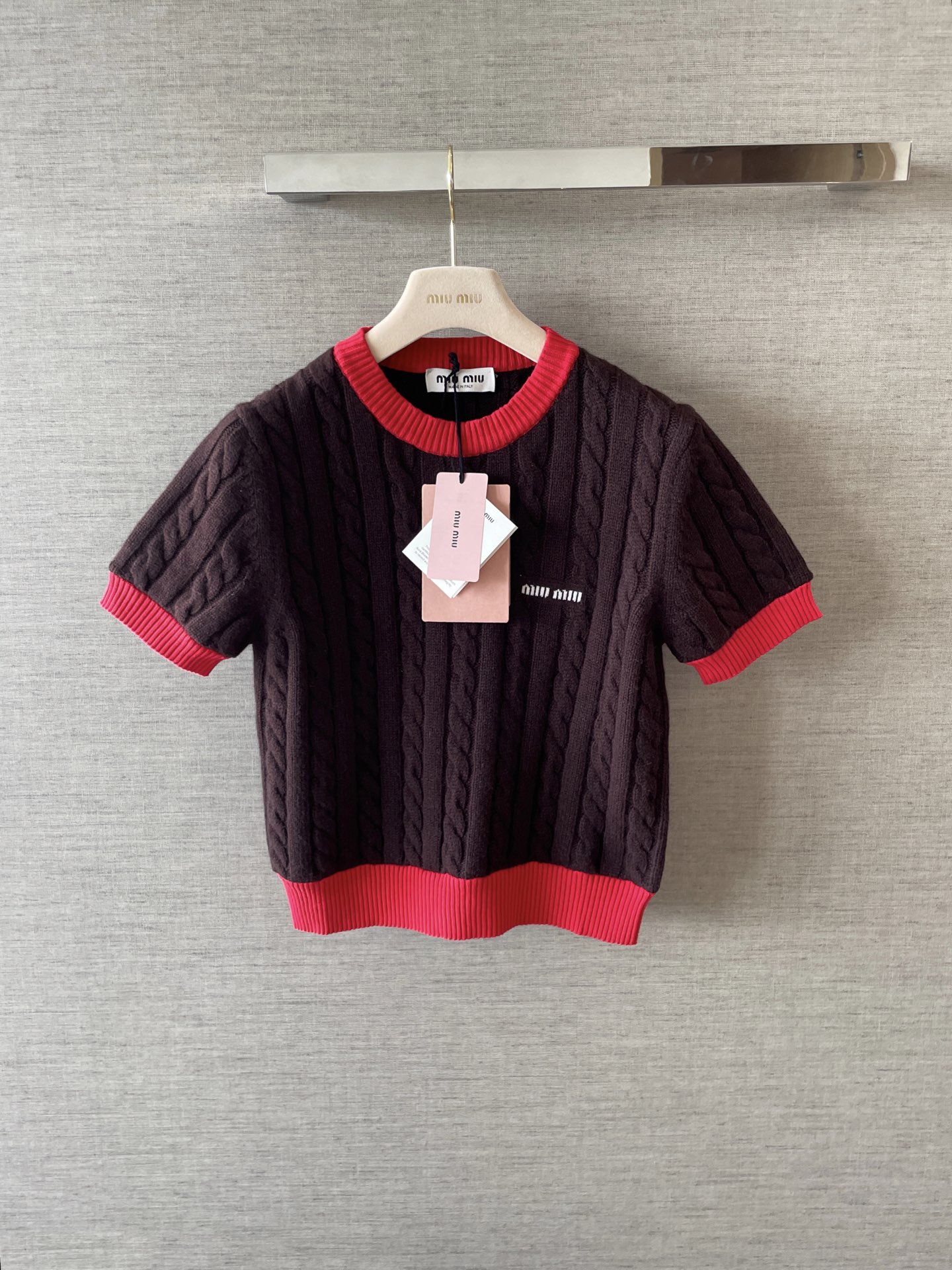 Miu Color Block Knit Top: Slim Fit, Designer Yarn, and Authentic Details