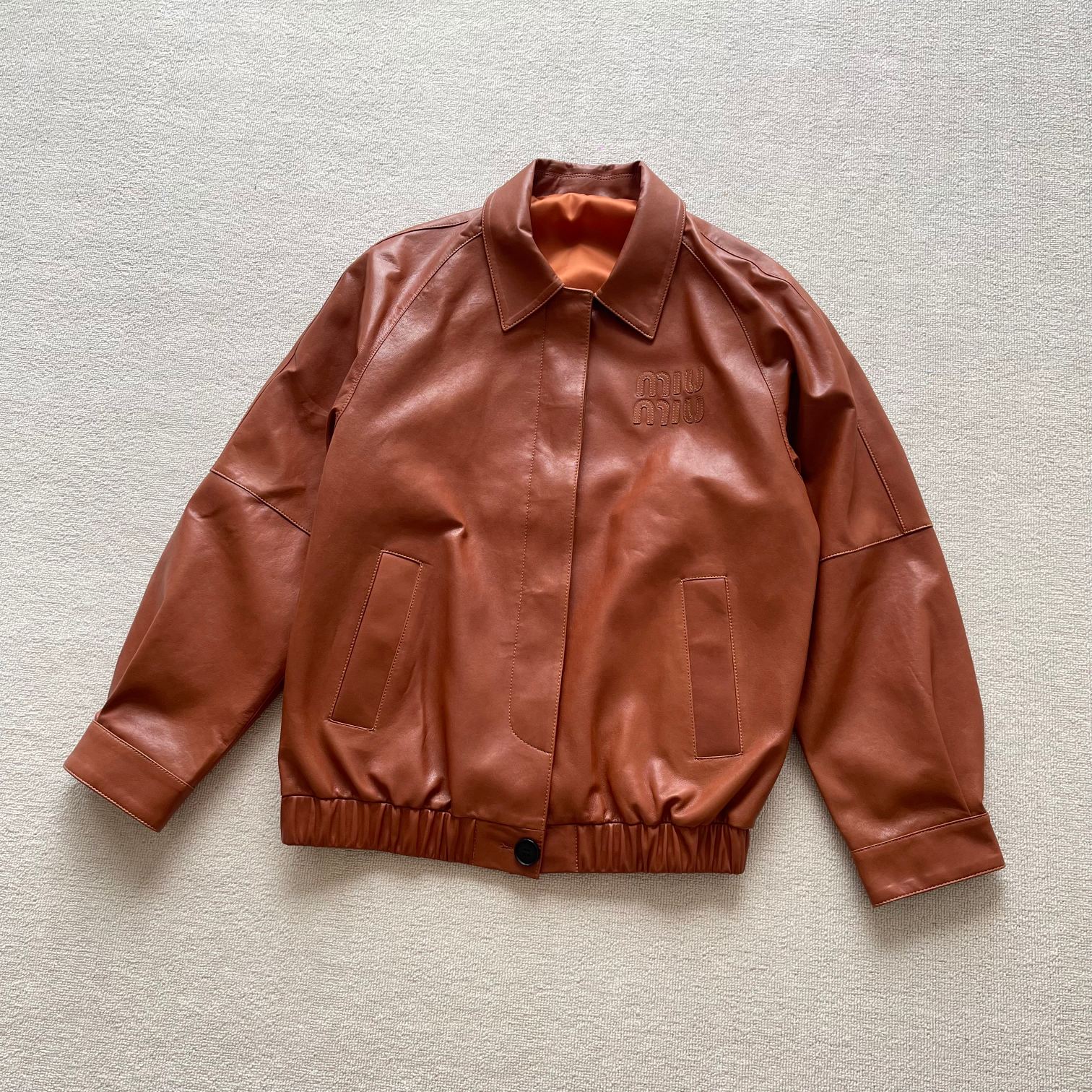Miu Miu Inspired Vintage Brown Leather Jacket – Unisex Style