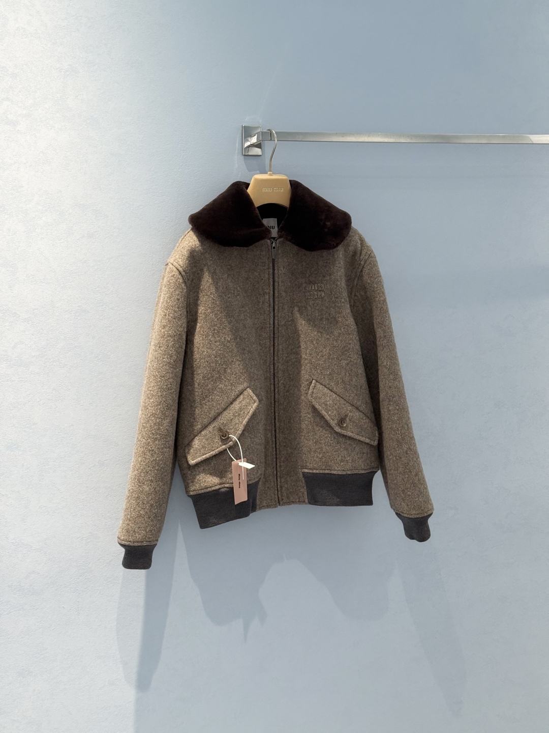 Miu Miu Shearling Zip-Up Jacket: Unisex Loose Fit, Embroidered Logo