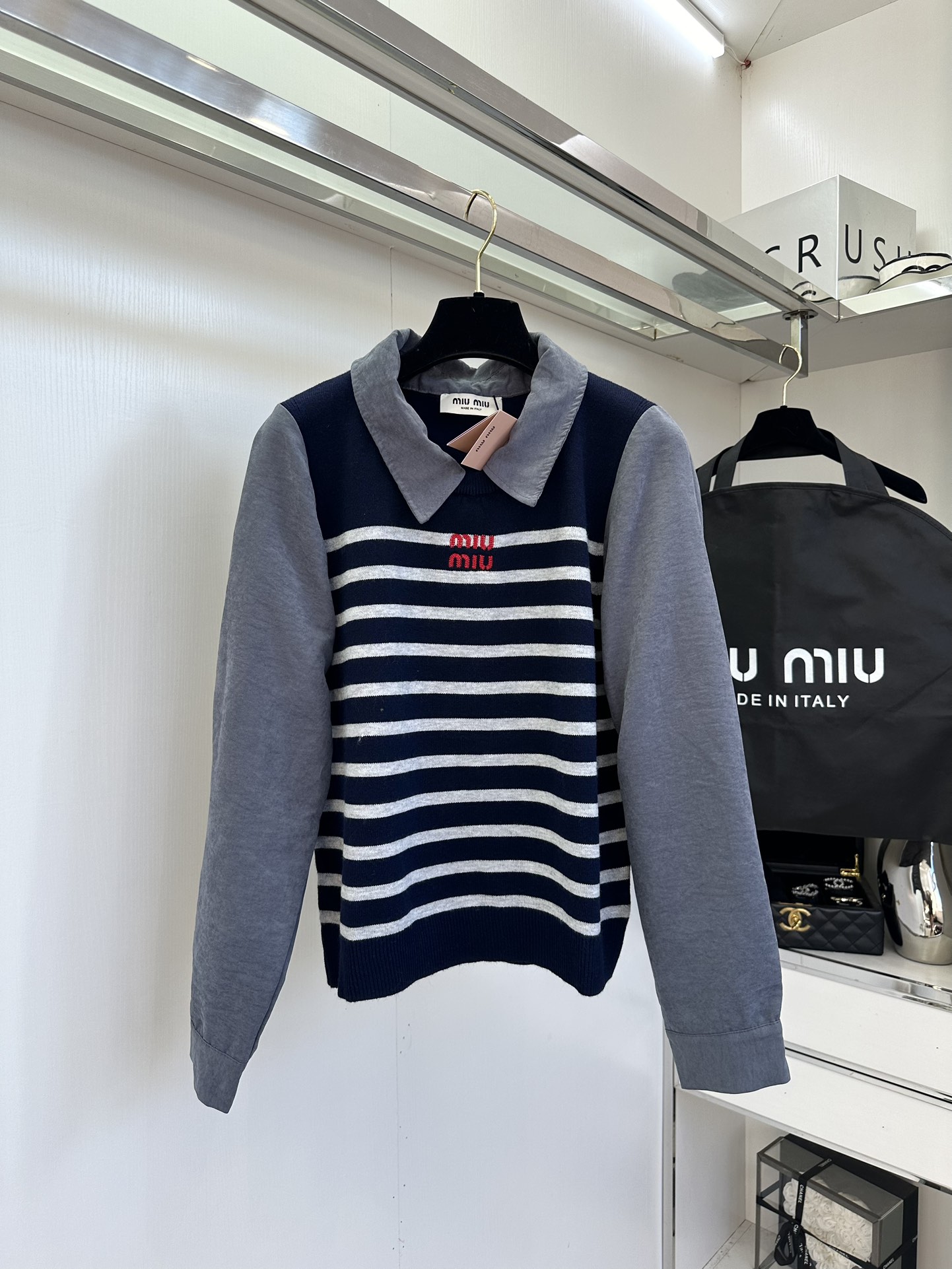 Miu Miu Striped Knit Top: Comfortable Cotton Blend, Embroidered Logo
