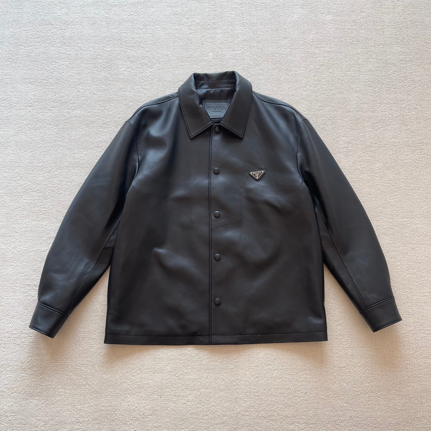 Prada Lambskin Leather Jacket Shirt with Triangle Logo – New 24SS
