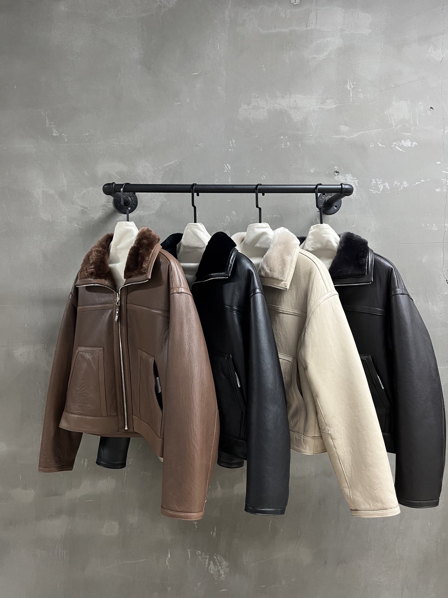 This shearling jacket redefines winter style with its luxurious feel and versatile design.