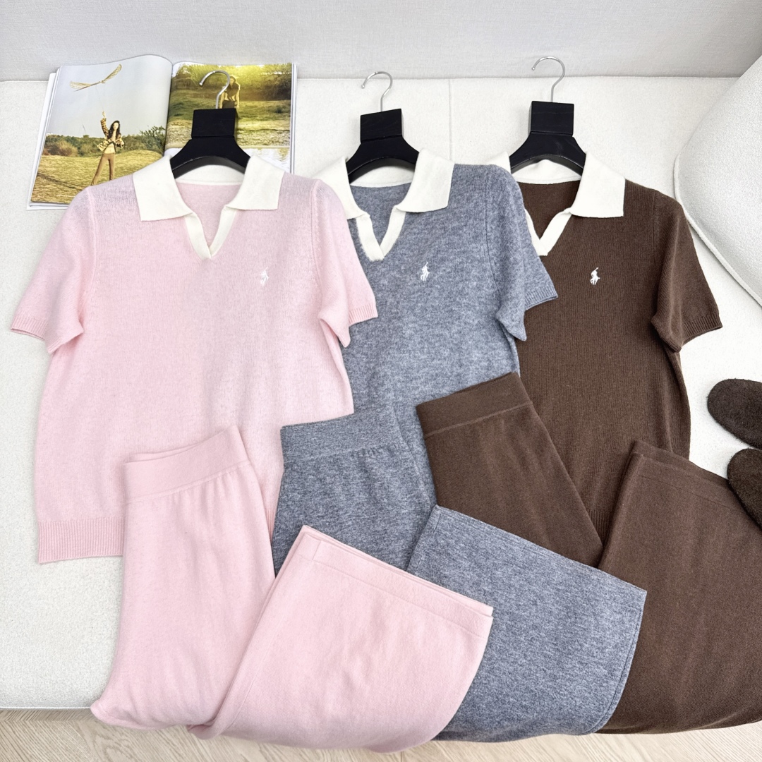 Wool Knit Set: Short Sleeve Top and Straight Leg Pants – Elegant Loungewear