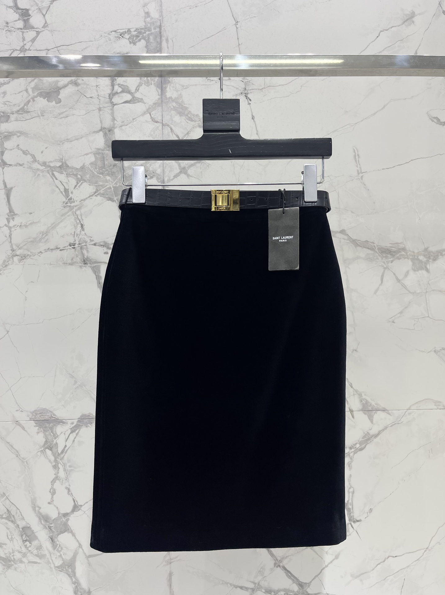 Yves Saint Laurent Velvet Midi Skirt with Back Slit – Elegant & Comfortable