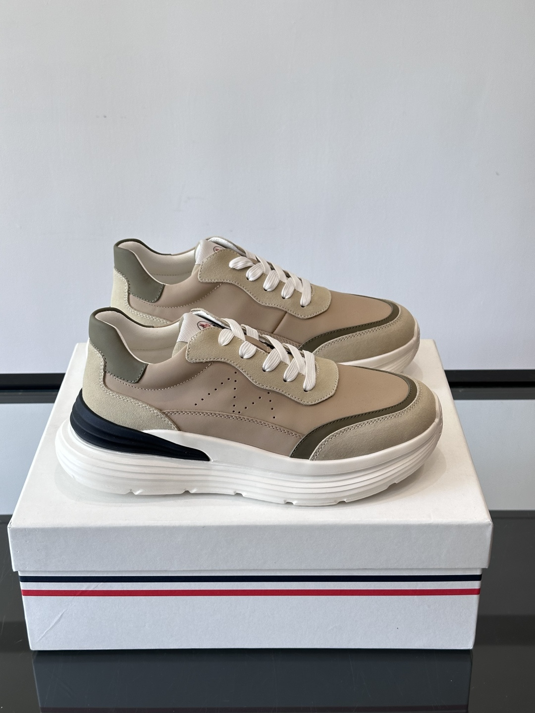 These Moncler sneakers are fantastic. The color combination is unique and they look great with jeans or athletic wear. I appreciate the attention to detail and the quality of the materials used.